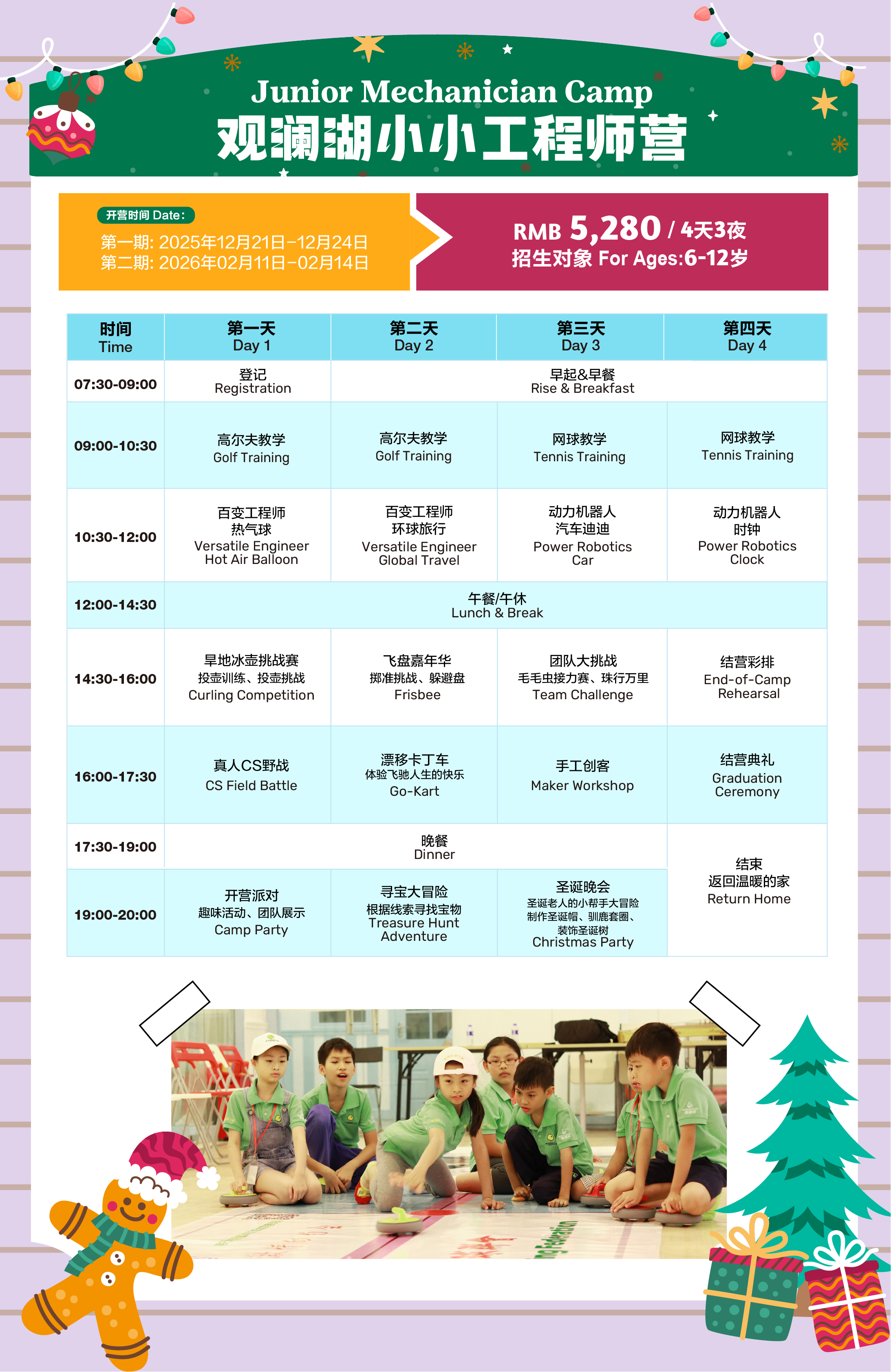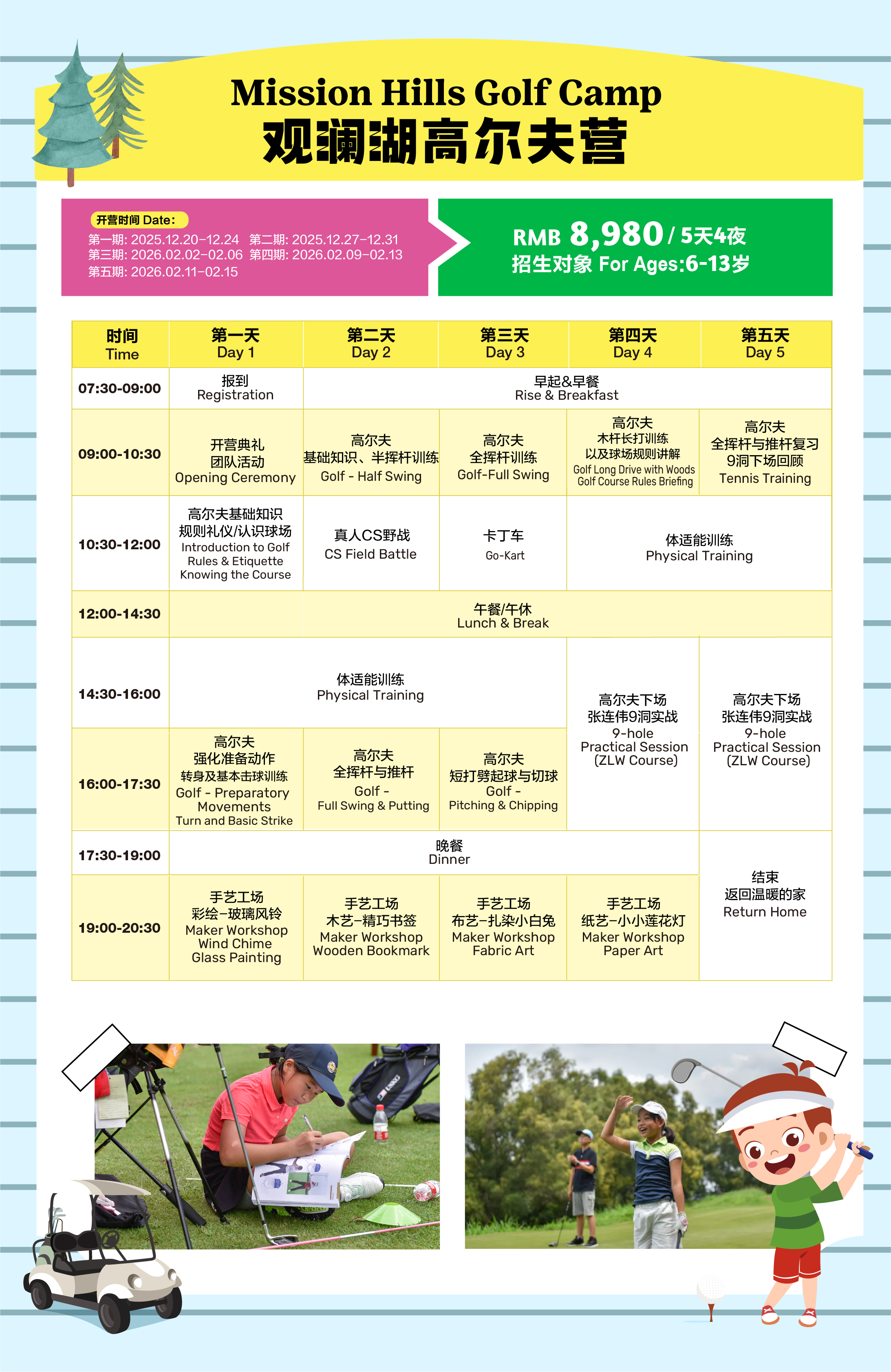 2025 年 11 月 19 日 瀏覽次數: 3 26年成功辦營經驗 | 5A級度假區優質營地 | MissionHillsWinterCamp | wintercamp | 假期成長計劃 | 全日制冬日營 | 冬令營 | 冬令營首選 | 地鐵直達 | 放假去邊度 | 親子成長計劃 | 觀瀾湖冬令營