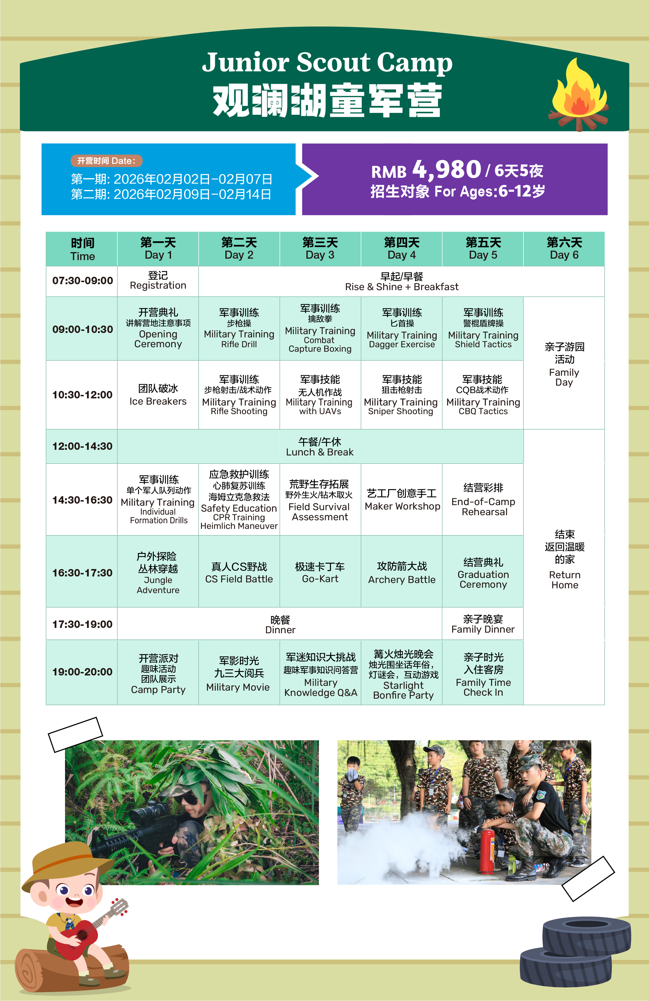- 沉浸式軍事訓練,鍛煉孩子紀律性和意志力